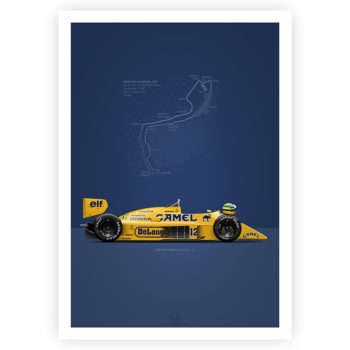 – La reproduction fidèle du circuit correspondant à l’année de la voiture dessinée + les noms de chaque virages