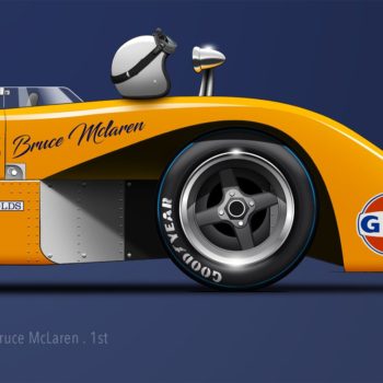 Illustration numérique dessinée avec passion pour les amateurs de voitures de course classiques.
